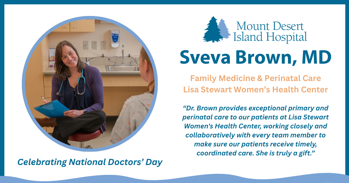 In honor of National Doctors Day, we invite you to recognize physicians like Dr. Brown who are shaping the future of rural healthcare. Consider making a donation to Mount Desert Island Hospital to support our doctors, residency education, and the care they provide to our community, today and for generations to come.