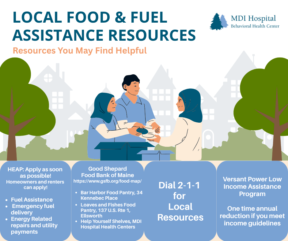 Reach out to the local food and fuel assistance resources listed in the graphic above.